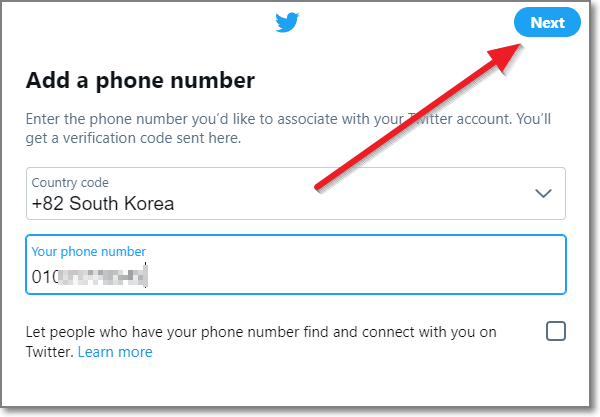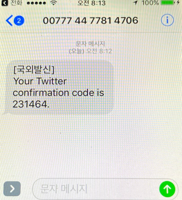여기서 주의할 점은 혹시 트위터 계정이 또 있다면, 이미 등록된 폰번호는 안됩니다. 새 번호를 해야 합니다.