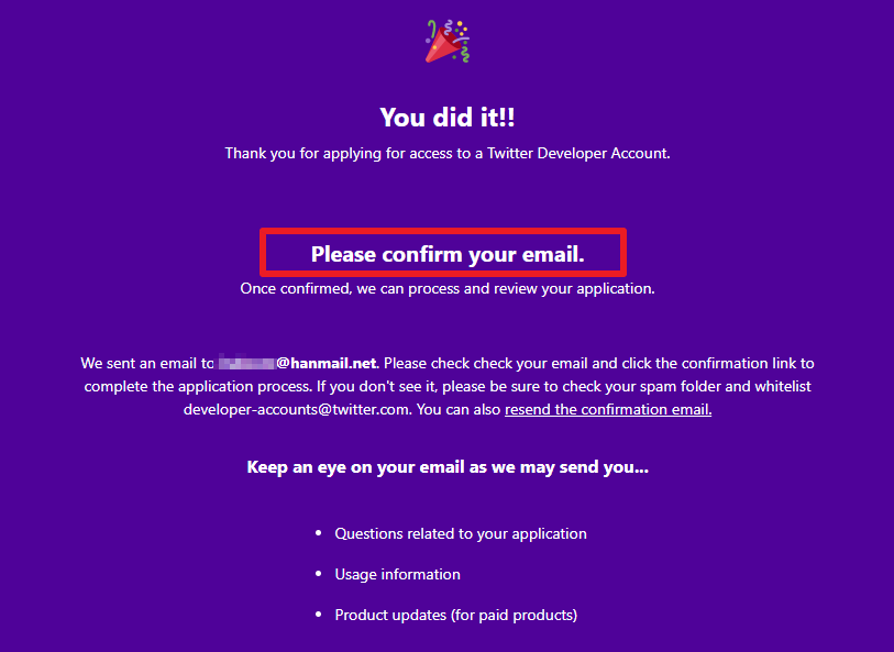 이제 끝났습니다. 이메일만 확인하면 됩니다. 계정에 연결된 이메일을 접속해서 트위터에서 온 메일을 확인을 해줍니다.