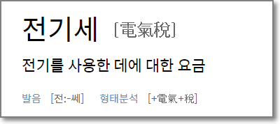 전기요금 개편안이 2020년 12월17일에 발표되었습니다.전기요금 하면 전기세가 떠오르는데요. 사실 전기는 사용한 만큼 내는 것이므로 전기요금이 맞습니다만, 국어사전에서 전기세를 찾아보면 아래처럼 전기를 사용한 데에 대한 요금이라고 나오는 것을 보면 국민들 대부분이 전기요금을 세금이라고 느끼고 있다는 것을 알 수 있습니다.