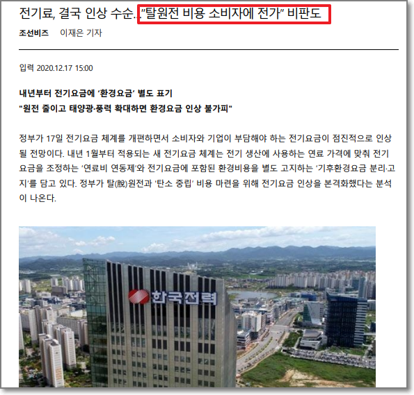 연료비를 연동해서 전기요금을 올리면 전기를 많이 쓰는 산업계에서는 유가가 올라서 힘든데 전기요금까지 오르는 이중고를 겪게될 수도 있다고 합니다. 일반 전기사용자의 할인도 줄인다고 했으니 정부가 탈원전 정책을 추진하면서 정작 비용부담을 국민에게 미루는 것이 아니냐. - 조선비즈