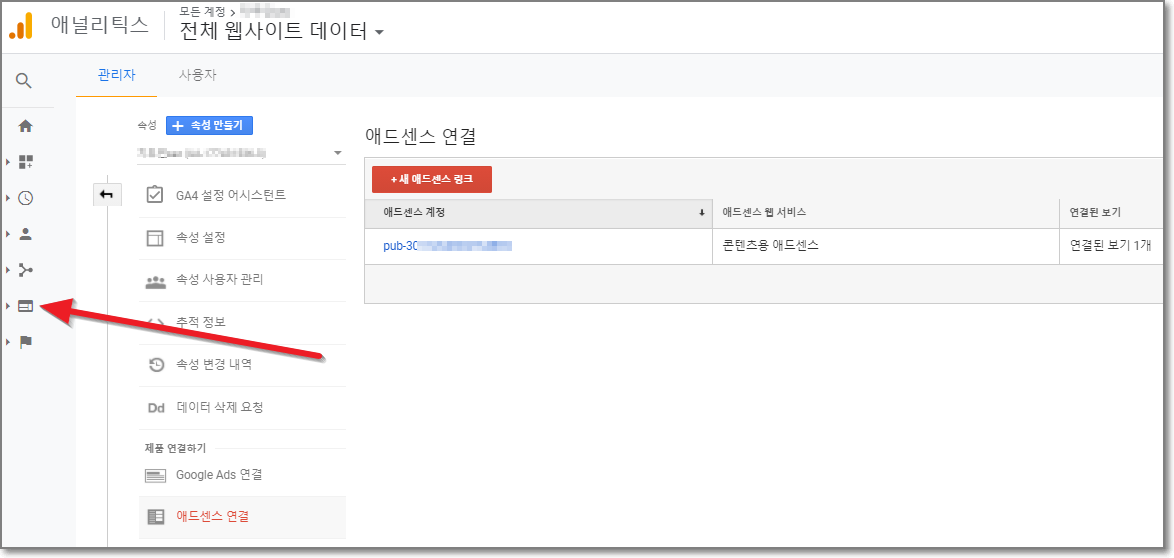 아래와 같은 화면이 나오면 구글 애널리틱스에 애드센스 연결이 완료된 것입니다. 연결이 되었는지 재확인을 해보겠습니다. 왼쪽메뉴에서 "행동"을 누릅니다.
