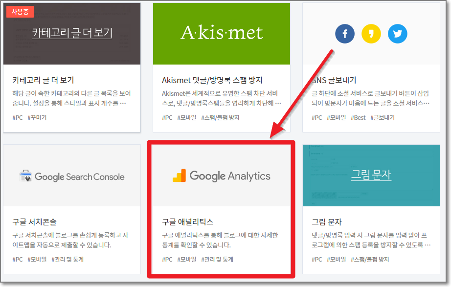 티스토리 플러그인중에서 구글 애널리틱스 찾아서 연결