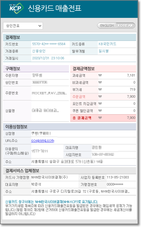 영수증은 아래처럼 모든 내용이 나오도록 캡쳐해서 이메일에 첨부하시면 됩니다.