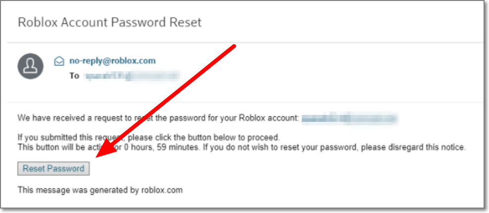 답장을 보냈으면 역시 또 1~2일내에 로블록스 계정이 복구되었다는 내용의 메일이 오게 됩니다. 메일 속에 있는 글중에 Reset Password를 누르면 암호를 재설정할 수 있게 됩니다. 단 이 버튼을 누르고나서 1시간 이내에 완료를 해야만 합니다.