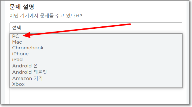 원하는 기기를 선택합니다. 여기서는 PC를 선택했습니다.