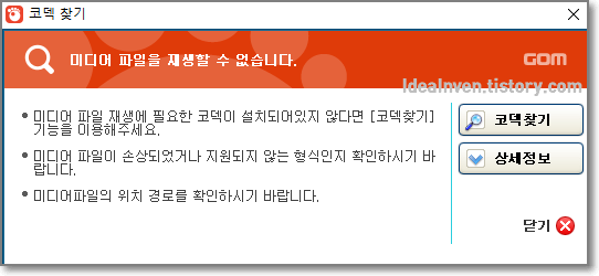 물론 위의 곰플레이어 상태창에서 "코덱찾기"를 누르고 아래의 화면에서 설치해도 되지만,