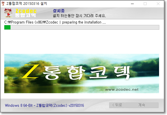 이제 드디어 설치가 시작됩니다. 진행바가 채워지는 동안 잠시 기다려주세요.