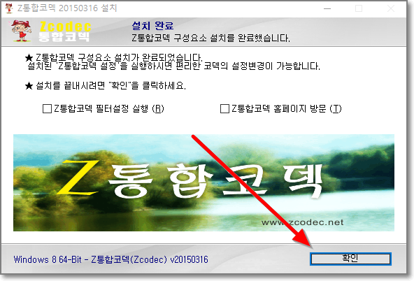 여기까지 해서 Z통합코덱 설치를 마쳤습니다. 이제 곰플레이어와 윈도우미디어 플레이어에서 코덱이 없어서 영상이 안나오거나 소리가 나오지 않았던 현상이 해결되었을 것입니다.