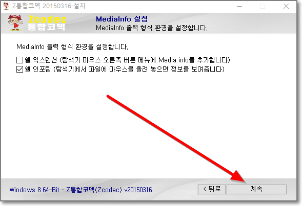 MediaInfo설정창은 그대로 두고 "계속"을 누릅니다.