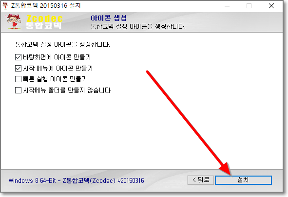 아이콘생성도 변경하지 말고 "설치"를 누릅니다.