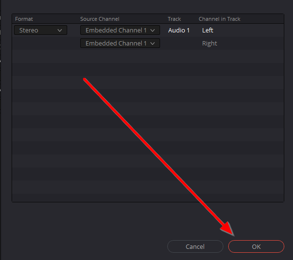 Source Channel쪽의 Mute를 클릭하고 Embedded Channel1으로 바꿔줍니다.