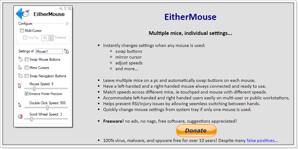 EitherMouse - Multiple mice, individual settings...