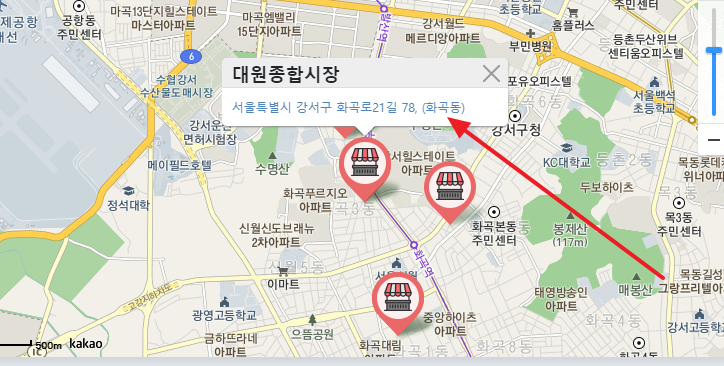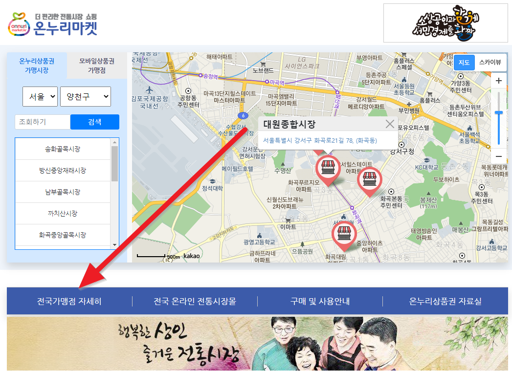 사실 저 위에서 시장을 눌렀을 때 기존에 준비되어있던 가맹점으로 연결을 해주면 좋으련만 실제로는 아래그럼처럼 따로 눌러서 들어가야 합니다.