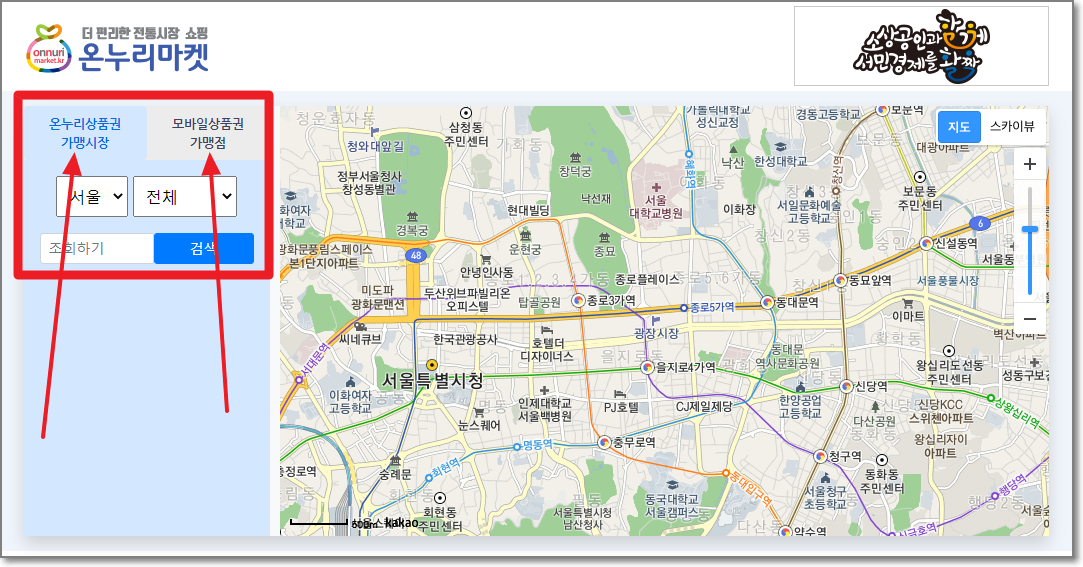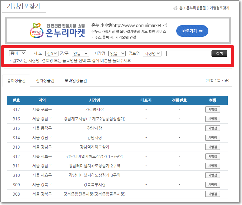 온누리상품권 사용처 검색하기(Part 1, 시장별 검색)