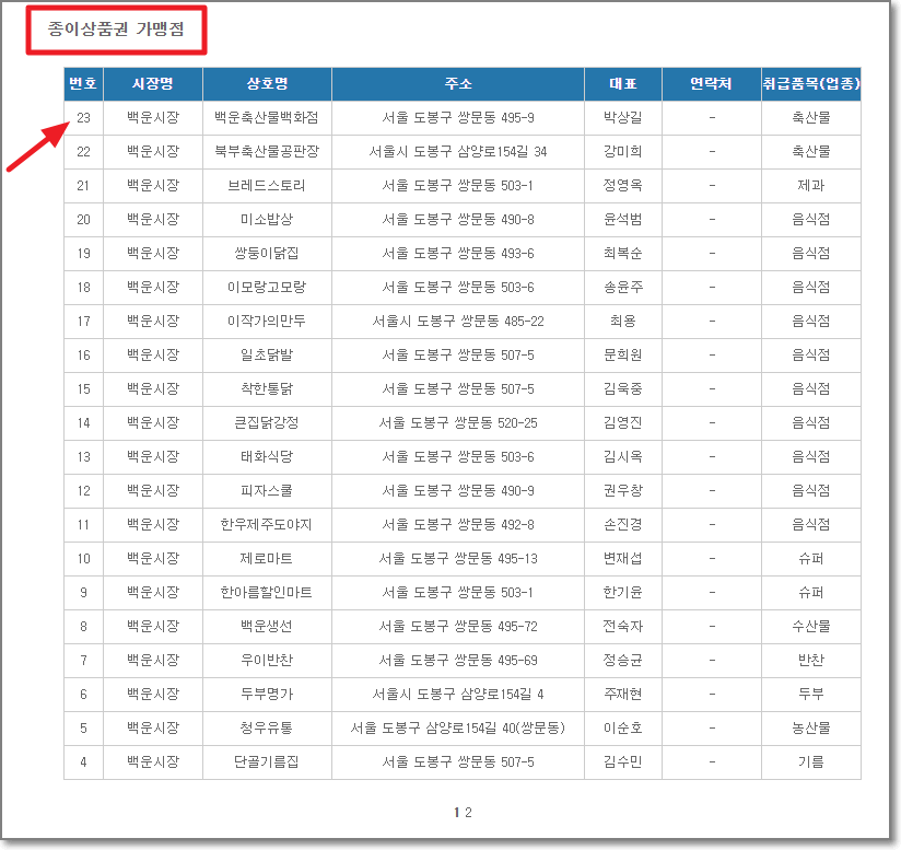 다시 종이상품권으로 검색한 화면을 보면 23개의 매장이 가맹점임을 확인할 수 있습니다.