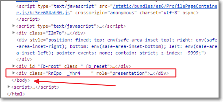 맨아래에 보시면 </body>라는 글자가 보이실거에요. 그 바로위에 있는 <div class="RnEpo..이런게 보이실거에요.