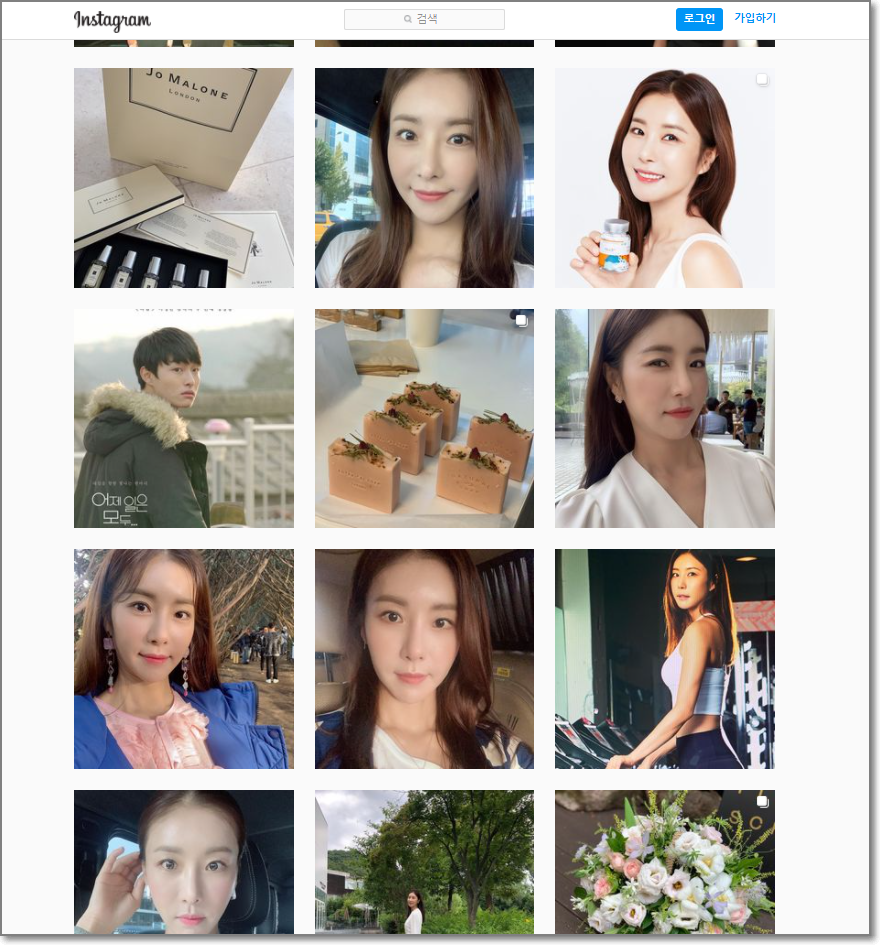 쭉쭉 내리면서 원하는 만큼 인스타그램을 즐기시면 됩니다. 당연한 말이지만 로그인을 하지 않았기 때문에 누가 왔다갔는지를 주인장은 알 수가 없겠죠?