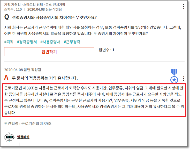경력증명서와 사용증명서의 차이점은 무엇인가요? - 법률QA | 법률메카