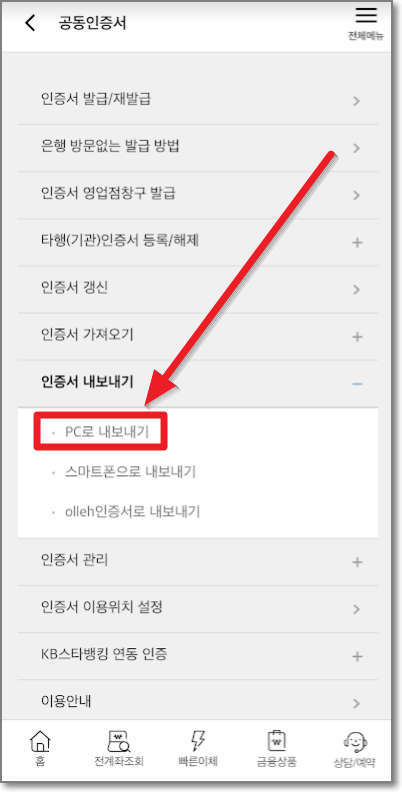 국민은행 공동인증서 PC로 옮기는 방법