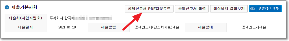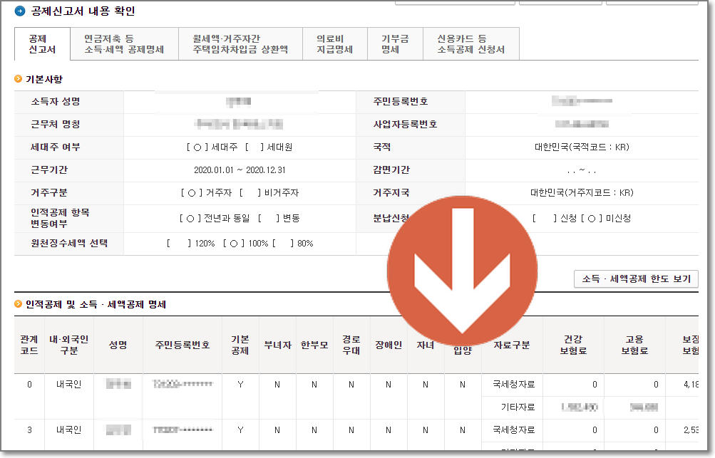 공제신고서 내용을 확인하면서 화면을 밑으로 내립니다.
