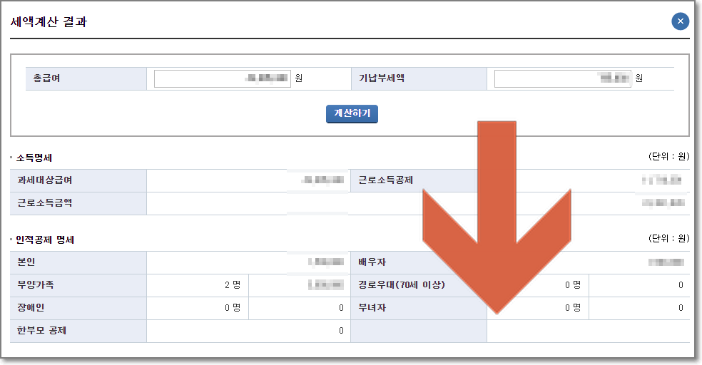 세액계산 결과가 나오면 화면을 맨 밑으로 내립니다.