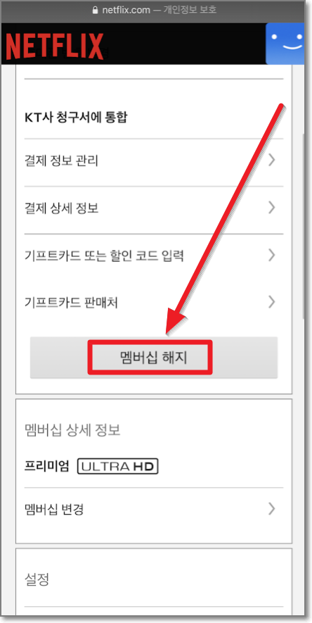 화면을 내리면 나오는 "멤버십 해지"를 누릅니다.