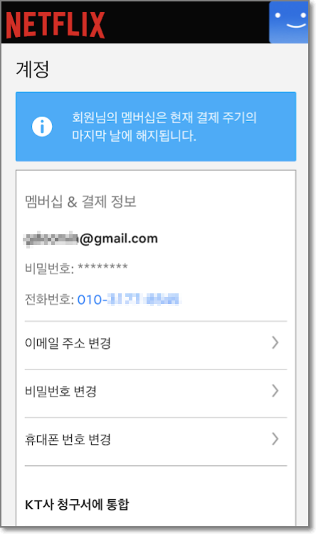 마지막으로 현재의 계정상태를 보여주는 것으로 마무리를 합니다. 하지만 여전히 날짜가 남아있기 때문에 넷플릭스는 볼 수 있습니다.