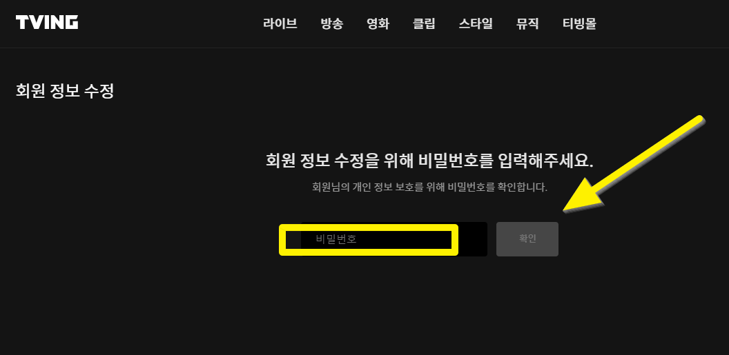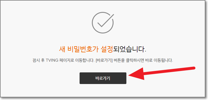 이제 새 비밀번호가 설정되었습니다. 이제 티빙 홈페이지로 이동합니다.