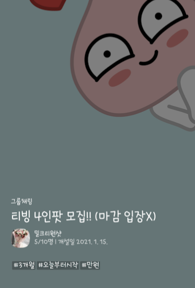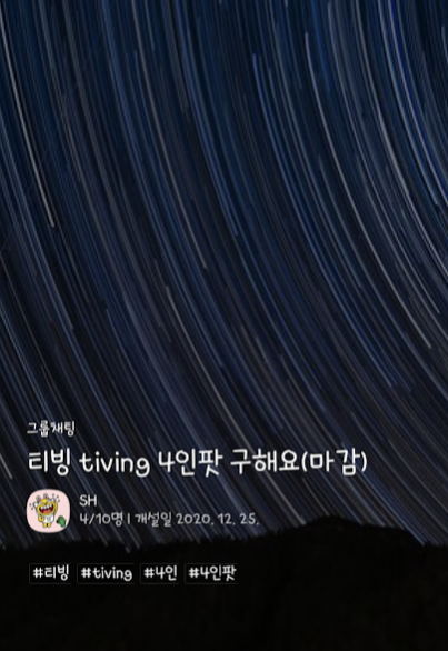 그러다 보니 넷플릭스와 마찬가지로 카카오톡 오픈채팅방에 티빙 4인을 구하는 방이 꽤 있습니다.