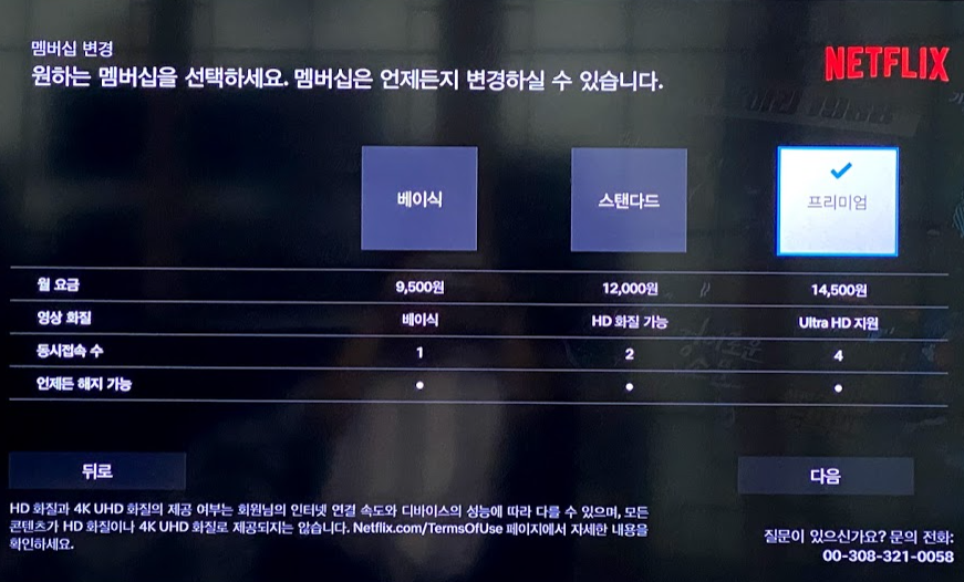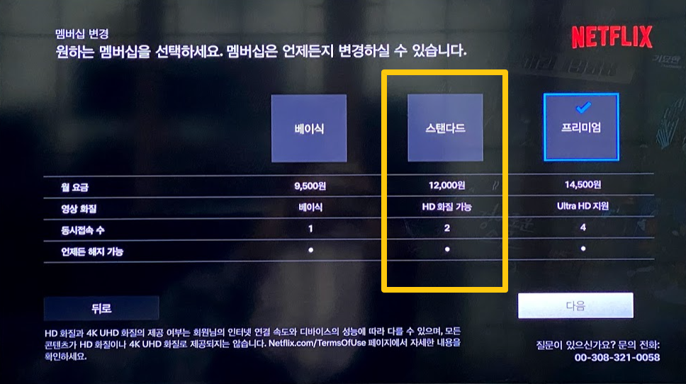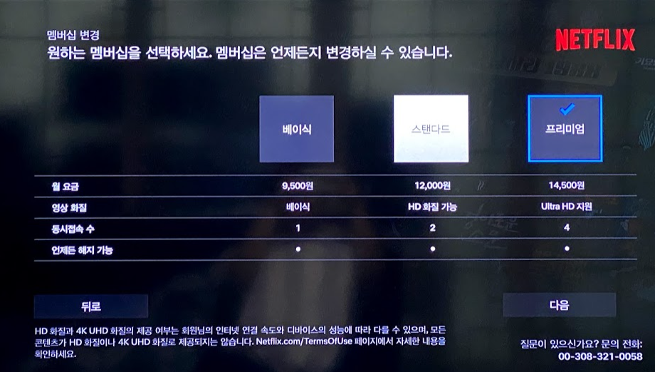 베이직 9500원, 스탠다드 12000원, 프리미엄 14500원인데요. 사실 티비로 안보시고 폰으로만 보신다면 베이직도 훌륭하지만 티비로 봐야 하신다면 스탠다드는 되야 만족하실 것입니다. 멤버십 및 요금제 비교에 대해서는 내용 참고하세요.