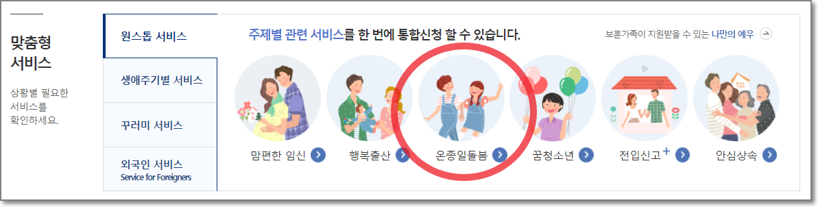 맞춤형 서비스에 있는 "온종일 돌봄"을 누릅니다.