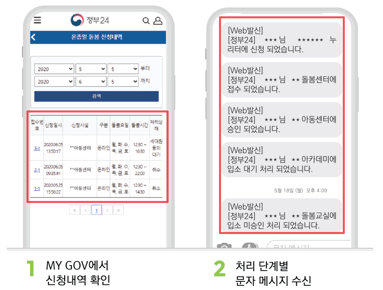 정부24앱의 MY GOV에서 확인이 가능하며 또한 등록한 휴대전화로 처리단계별 문자 메시지도 오게 됩니다.