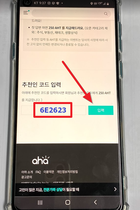 추천인 코드 입력(입력하시면 바로 250AHT 획득)- 6E2623
