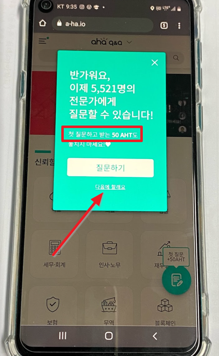 최근 비트코인이 6천5백만원까지 오른 적이 있습니다. 현재(2021년 2월 25일) 기준으로 5600만 원 정도 하고 있는데요. 비트코인이 이렇게 오르니까 다른 코인들도 주목을 받고 있습니다. 이번 시간에는 그중에서 아하토큰(AHT)에 대해서 알아보도록 하겠습니다. 가입만 해도 250 AHT, 추천인 코드 입력하면 또 250 AHT, 출석 체크하면 한 달 4650 AHT, 첫 질문하면 50 AHT를 주는 곳입니다. 출첵 중에서는 5개월간 16만 원 정도니 제일 후하다고 할 수 있습니다.(1 AHT=7원 기준)