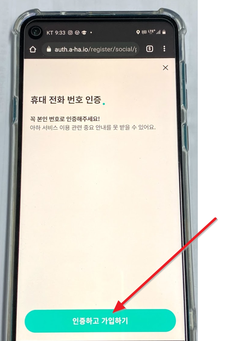 아하는 휴대전화를 인증해야 하는데요. 1인당 1개의 계정만 가질 수 있습니다. 휴대전화 인증을 진행합니다.
