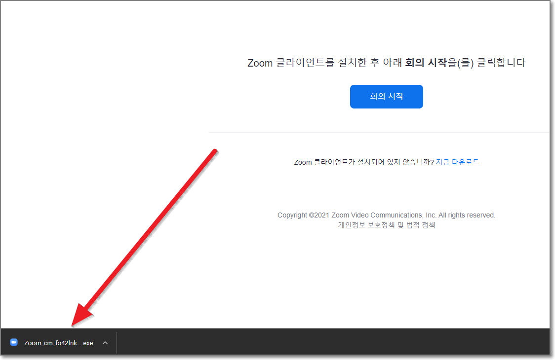 인터넷 창 왼쪽 밑에 zzom_cm_...이라고 쓰인 것이 보일 텐데요. 이 부분을 누릅니다.