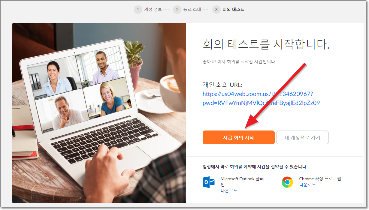 이제 줌 설치 파일을 다운 받을 차례입니다. "지금 회의 시작"을 누릅니다.