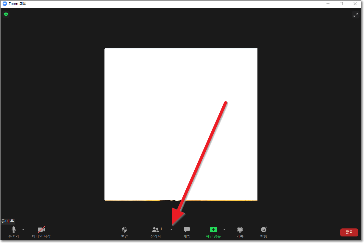 줌 화면에서 아래처럼 참가자 옆에 있는 위로된 꺽쇠를 누릅니다.