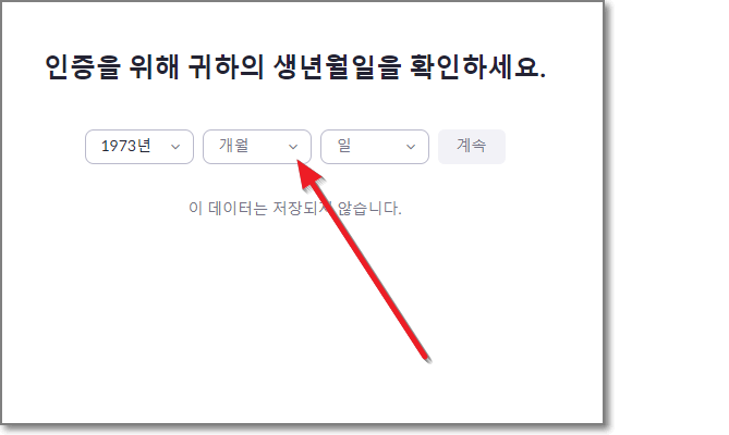 그리고 "개월"이라고 쓰여있는 곳도 "년"과 똑같이 태어난 월을 골라줍니다.(줌이 한글 번역이 제대로 안되어있군요. "개월"이라니요. "월"이라고 해야죠.) "개월"옆에 꺽쇠 누르고 월이 나타나면 자신의 태어난 월을 고릅니다.