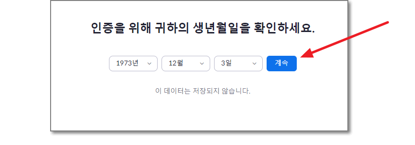 생년월일을 다 고르셨으면 오른쪽에 "계속"이 파란색으로 변해 있을 것입니다. "계속"을 누르세요.