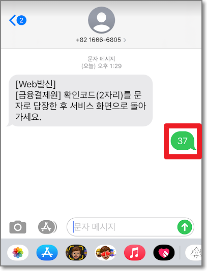 휴대폰으로 아래와 같은 문자가 오면 큰 숫자 2자리를 입력하고 전송을 하면 됩니다.
