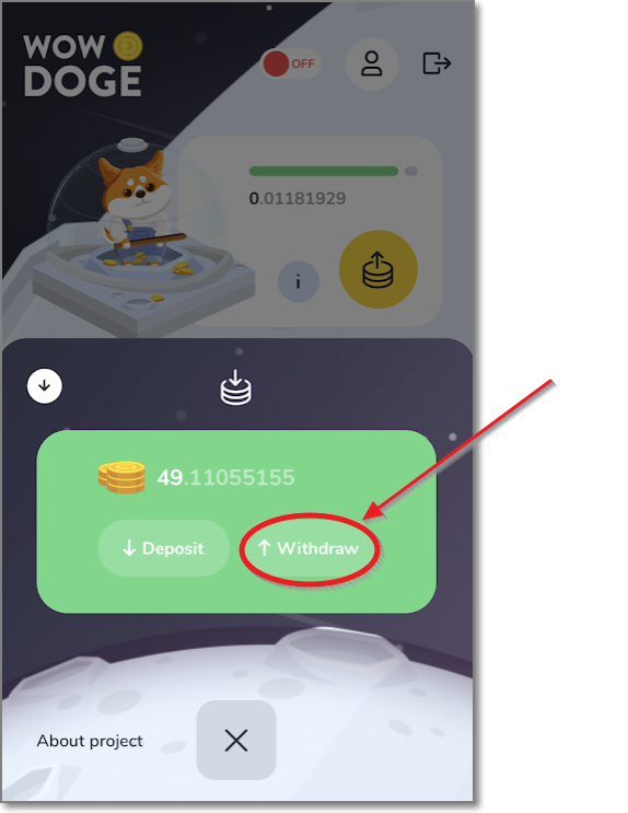 위드로(withdraw) 버튼을 누르면 "확인 절차 없이 바로 출금됩니다." 저도 누르고 나서 깜짝 놀랐네요.