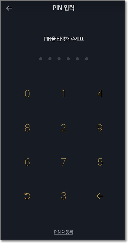 위에서 설정한 이메일과 비밀번호를 입력하고 "로그인"을 누르면 핀번호를 입력하라고 나옵니다. 역시 아까 설정한 핀번호를 입력합니다.