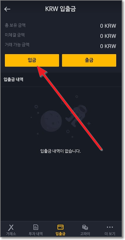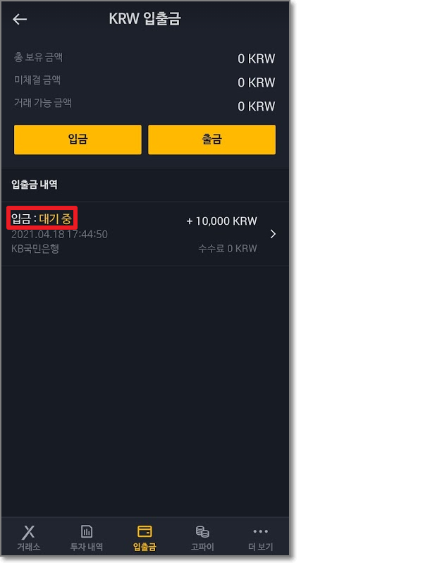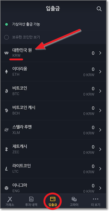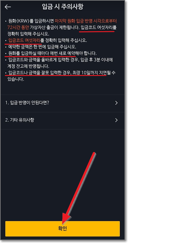 원화(KRW) 입금하기(입금 코드 주의)