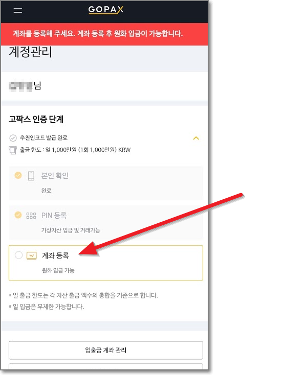 원화(KRW) 계좌 등록하기