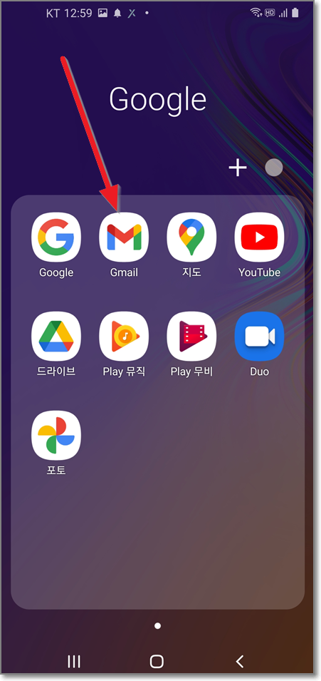 "가입하기"를 누르면 바로 이메일 인증을 하라고 하는데요. 이메일 인증이란 처음에 가입할 때 기입한 이메일로 클릭할 수 있는 링크를 보내줄 테니 그것을 눌러서 이메일의 주인임을 입증하라는 것입니다. 휴대폰에서 Gmail앱을 찾아서 실행합니다.
