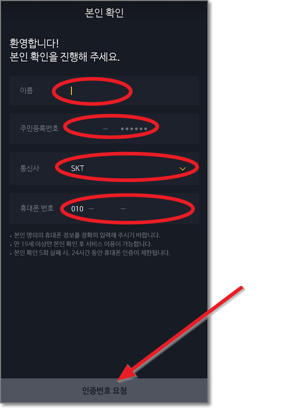 고팍스 인증 단계는 초기에는 3개인데요. "본인 확인", "PIN등록", "계좌 등록"입니다. 이중에 PIN등록은 했으니 나머지를 해야 합니다. 먼저 본인 확인을 누릅니다. 모두 동의합니다에 체크하고 이름, 주민등록번호, 휴대폰 번호를 입력해서 본인인증을 마칩니다.