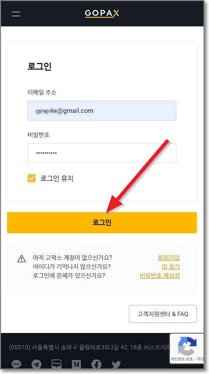 고팍스 가입하기