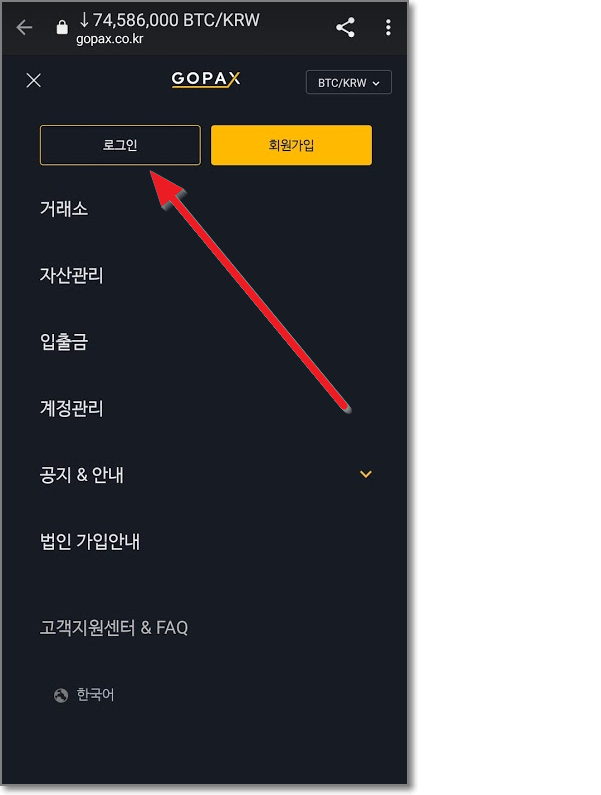 고팍스(GOPAX) 모바일 앱 설치하기