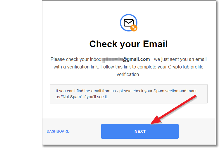 Email Verification(이메일 인증) 창이 나오면 VERIFY를 누릅니다. 구글 이메일로 인증메일을 보냈다고 알려주는데요. NEXT를 누릅니다.